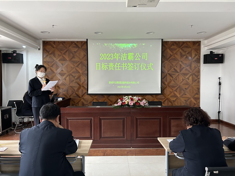 為進(jìn)一步提升目標(biāo)責(zé)任主體考核,壓實(shí)目標(biāo)責(zé)任,強(qiáng)化履職擔(dān)當(dāng),3月24日下午,晉城市潔霸清潔服務(wù)股份有限公司2023年目標(biāo)責(zé)任書簽訂儀式在公司黨群活動中心舉行。公司管理層、各單位、部門經(jīng)理、主管及文員參加會議。