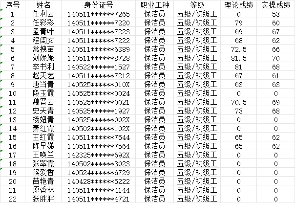 晉城市潔霸清潔服務股份有限公司職業(yè)技能等級認定中心現(xiàn)將2024年9月15日認定人員成績公示如下: